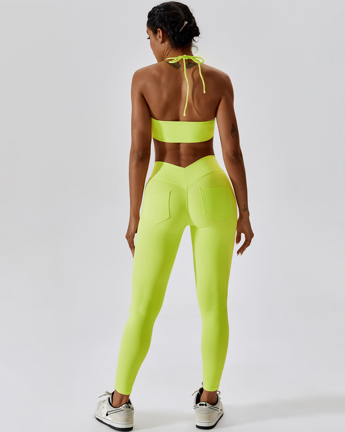 Crafted for your comfort, the high-stretch fabric, gentle on the skin, facilitates unhindered motion and effective moisture control, ensuring peak performance. Luxuriate in the opulent sensation of our ultra-soft nylon spandex fabric, which offers a nude-like feel against your skin. Boasting dual back pockets, these leggings prioritize convenience while maintaining an unwavering sense of style.