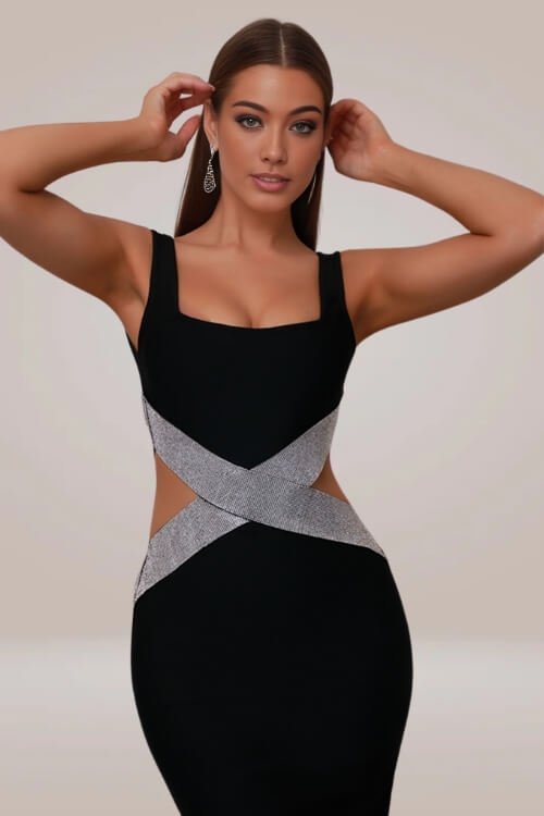 - Sequin Cutouts: Strategic cutout details add a modern twist to the classic midi dress, offering a glimpse of skin in a tasteful manner..