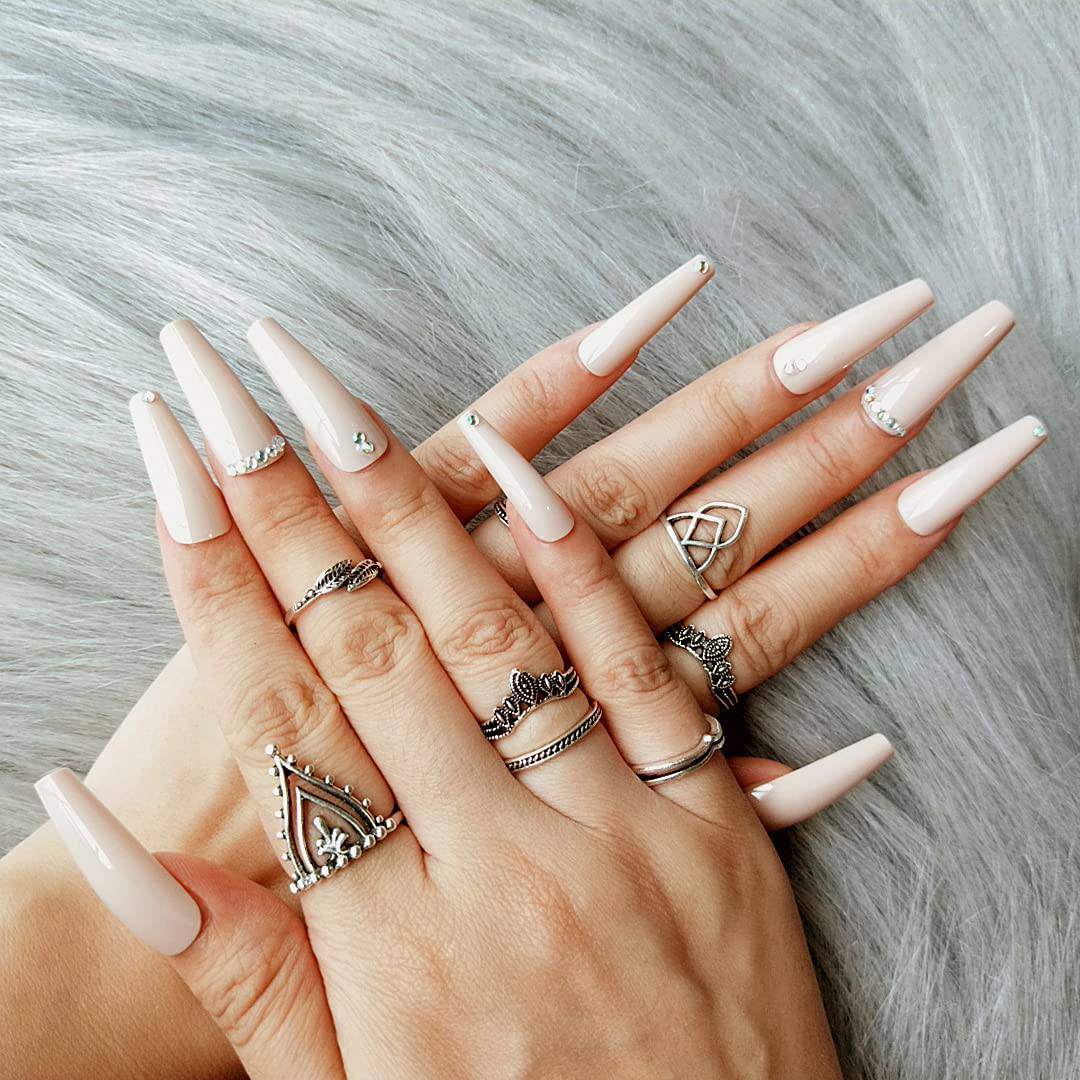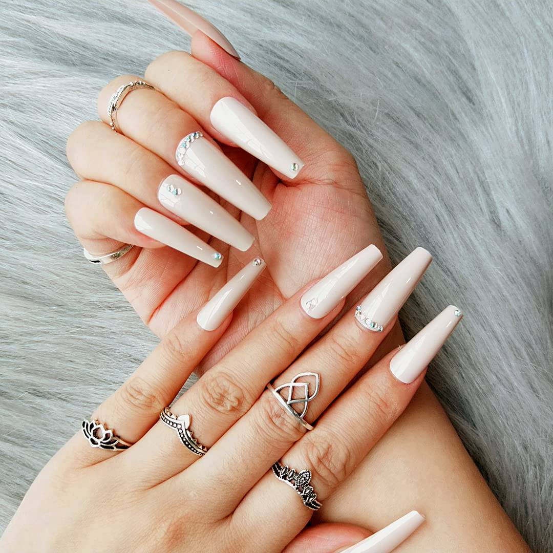 Press On Nails Nude Glossy Coffin Crystal Nail Kit