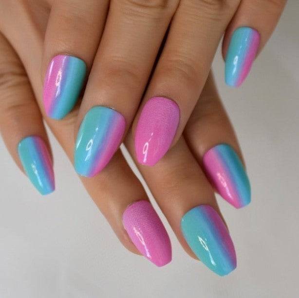 Press On Nails Pink And Blue Glossy Coffin Ombre Nail Kit
