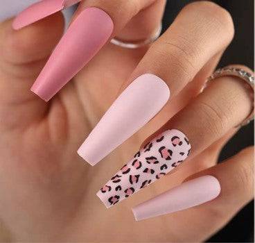 Press On Nails Pink Matte Coffin Leopard Nail Kit