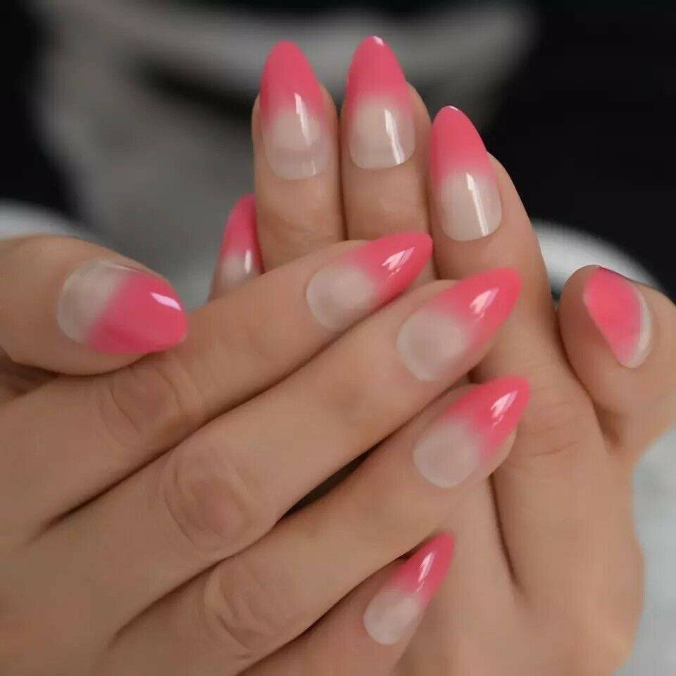 Press On Nails Pink Ombre French Glossy Almond Nail Kit