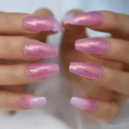 Press On Nails Pink Ombre Glossy Coffin Glitter Nail Kit