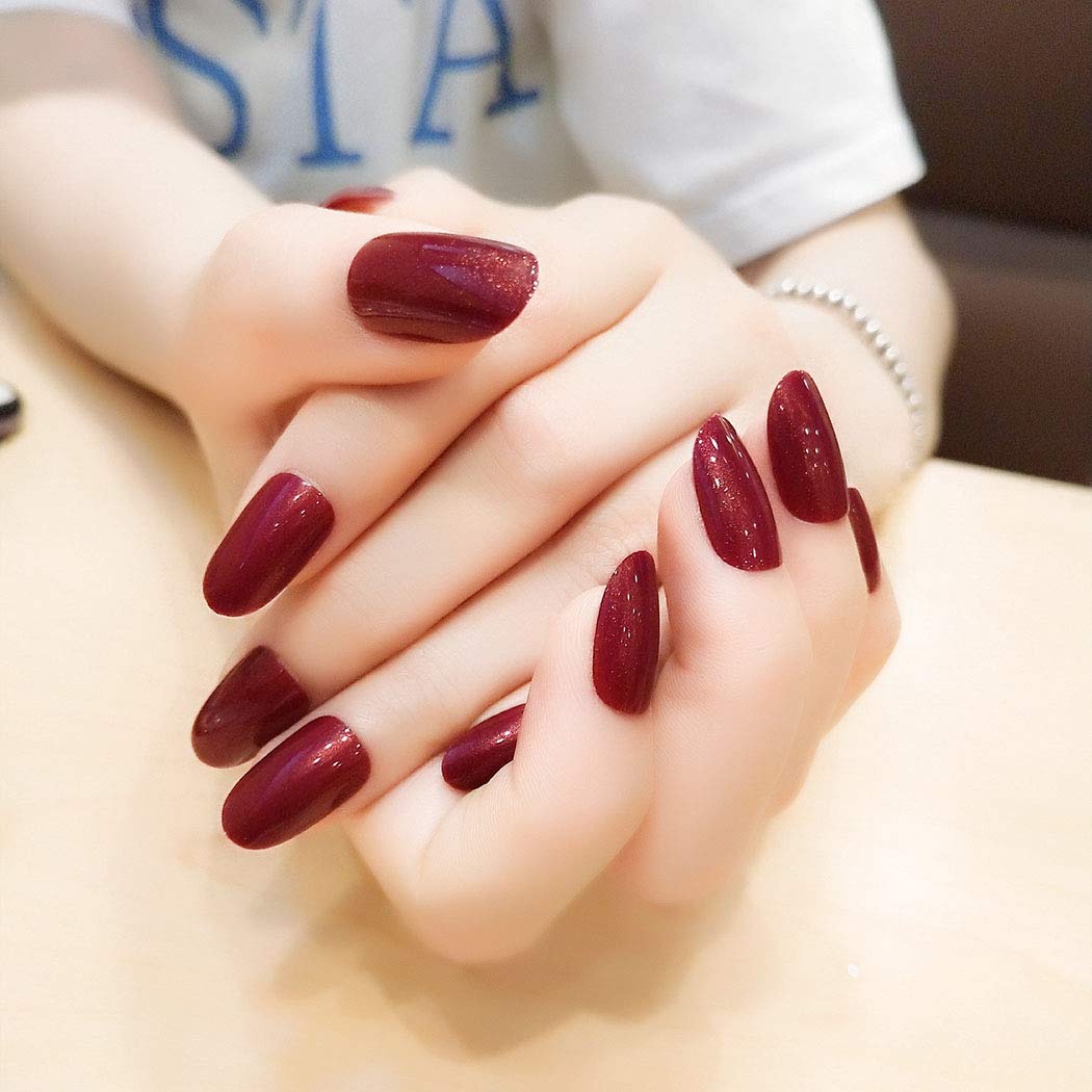Press On Nails Red Glossy Oval Glitter Nail Kit