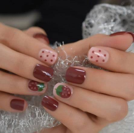 Press On Nails Red Glossy Round Strawberry Nail Kit