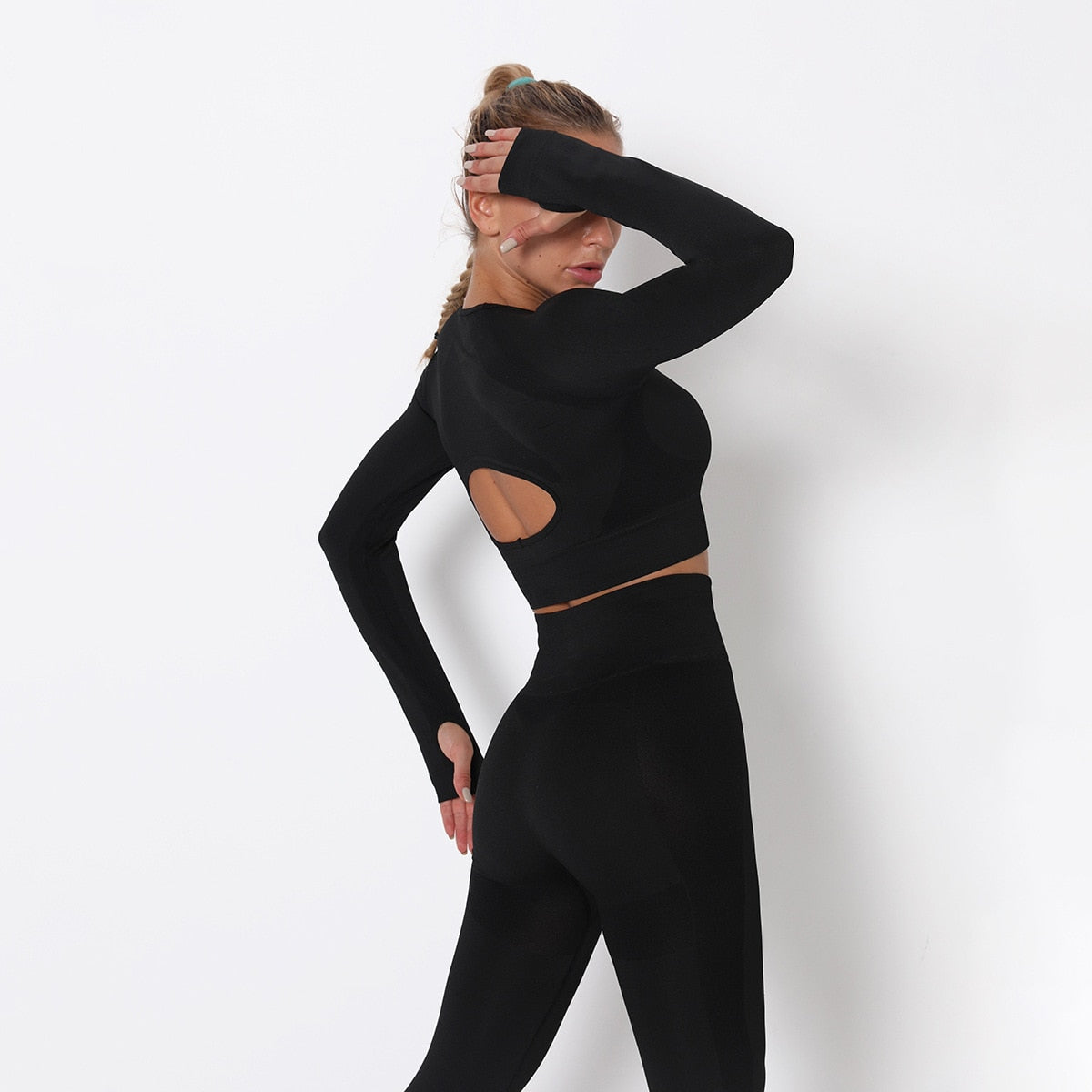 React LUXE Seamless Sleeve Sports Crop - Black